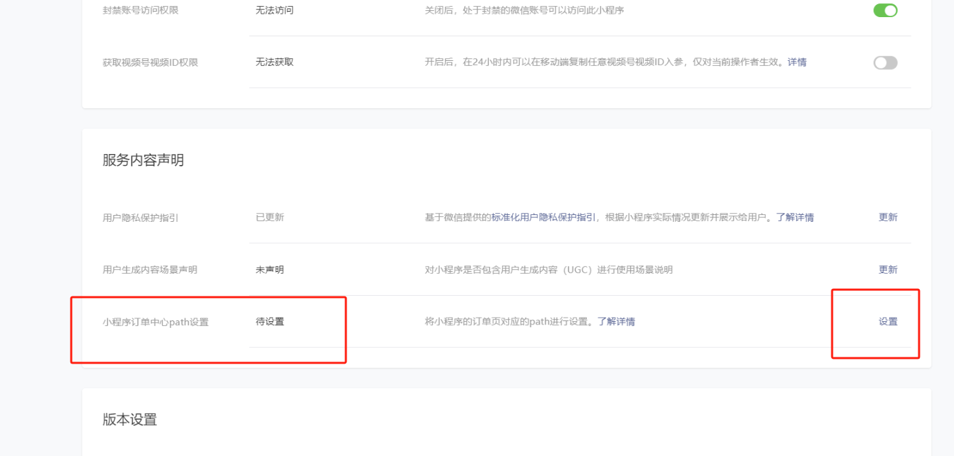自2022年12月1日起,平台提供以下两种方式供开发者将小程序订单中心页的path同步给平台(订单中心页的path如有变更,请及时重新设置),以便平台核实设置情况。请尽早设置页面path,以免导致10月30日之后的代码提审失败。